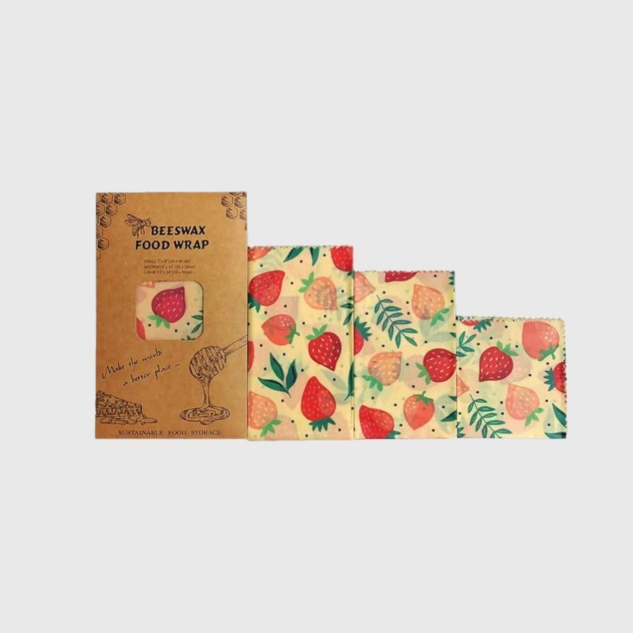 Comprend : * 1 – Petit emballage 8″x8″ * 1 – Moyen emballage 10″x10″ * 1 – Grand emballage 12″x12″ Les emballages en cire d'abeille sont une alternative réutilisable au film plastique à usage unique et aux sacs en plastique. Les emballages en cire d'abeille gardent les aliments frais plus longtemps grâce à leur respirabilité et peuvent vous faire économiser de l'argent en réduisant le gaspillage alimentaire. Utilisez simplement la chaleur de vos mains pour mouler l'emballage autour de l'article souhaité. Nos emballages en cire d'abeille sont fabriqués à la main à partir de : 100 % coton biologique, cire d'abeille canadienne, résine de pin, huile de jojoba Utilisations suggérées : emballer du fromage, des légumes, des fruits, des bols, des crackers, etc.