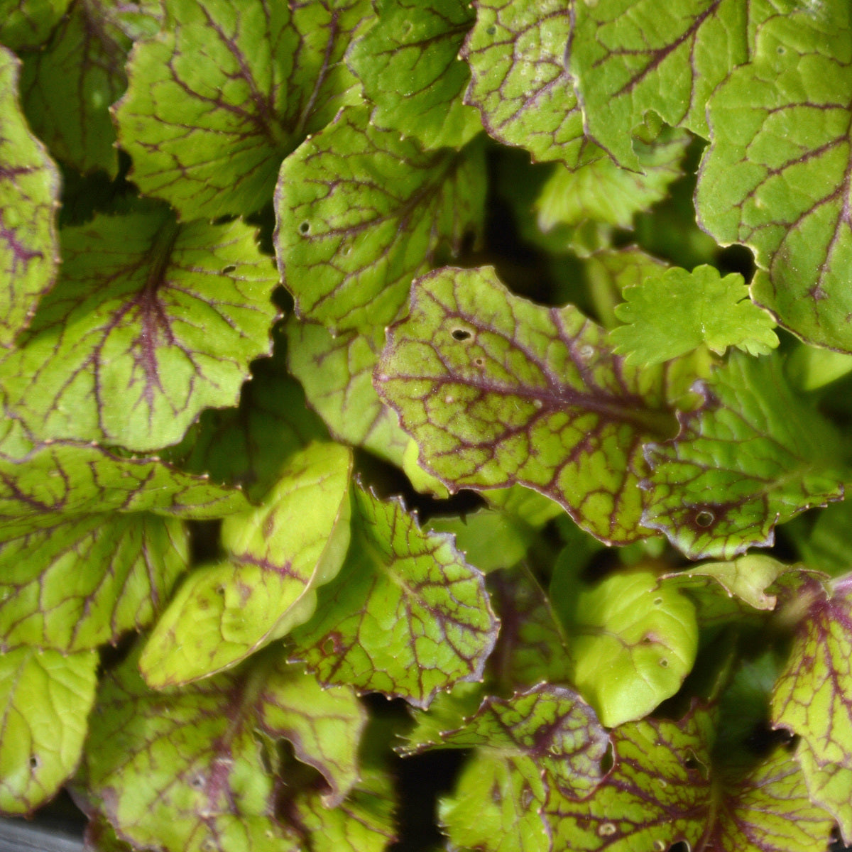 The mild flavor of this variety is just what's needed to add a little zest to salads. The plant produces beautiful light green leaves, accented with purple veins, which feature a central rib that becomes increasingly thicker as the days go by. This part of the leaf is particularly delicious stir-fried, while the broad, blistered blade is served cooked like spinach or incorporated into exquisite soups. The plant takes a while to set seed, and leaves that have been exposed to frost are distinguished by a sweeter flavor.
