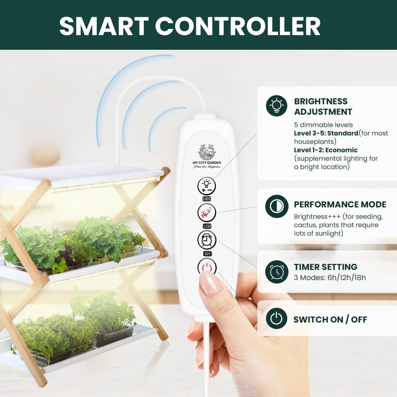 Introducing POWER GROW, a durable, lightweight, and high-output plant light perfect for growing or starting seeds indoors. By providing lighting recipes that match the spectrum, intensity, and lighting hours plants desire, POWER GROW supports all developmental processes throughout the plant's life cycle while emitting a natural, sun-like glow. Install POWER GROW under shelves or cabinets today and be ready to welcome happier plants in 2 weeks!