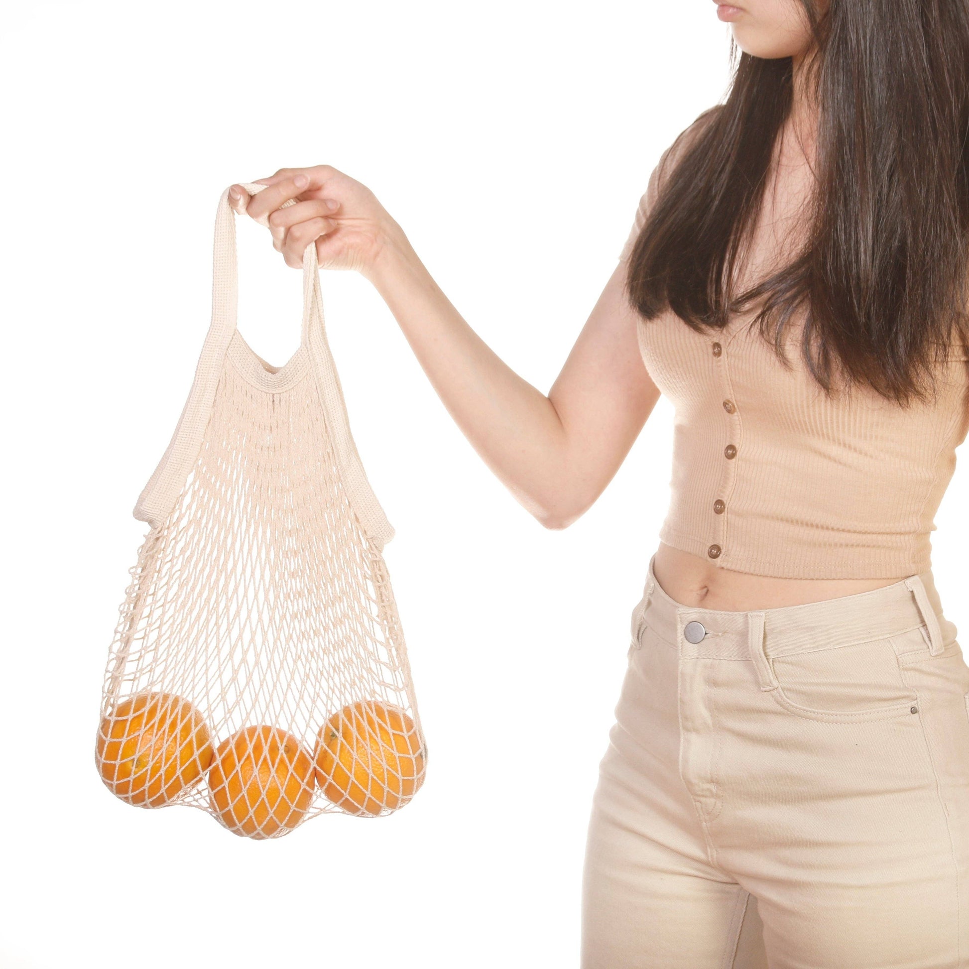 This summery cotton mesh bag is perfect for your everyday zero-waste lifestyle! It's small and easy to take anywhere. Use for grocery shopping, farmers markets, and more!