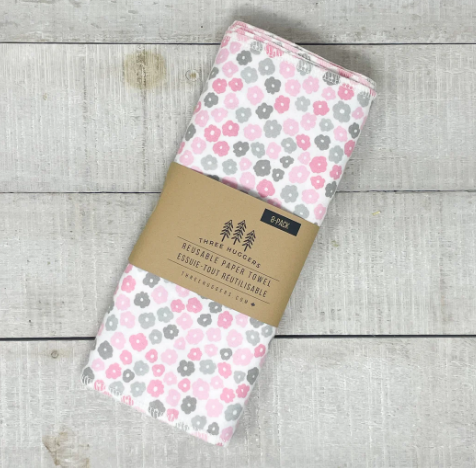 Essuie-tout réutilisables biologiques - fleurs roses et grises