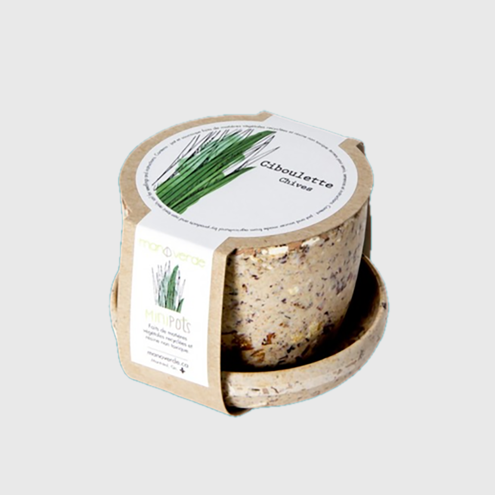 Ciboulette : la gamme Minipot vous offre une variété de semences pour préparer vos semis vous-même dans des contenants faits de matières végétales recyclées Kanso designs.