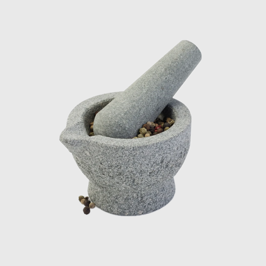 Découvrez notre mortier et pilon Zen, un duo robuste en granite gris de premier grade. Il excelle dans la mouture rigoureuse des herbes et épices. Son équilibre parfait et sa manipulation aisée libèrent les arômes naturels tout en préservant les huiles essentielles. Une expérience culinaire authentique à chaque utilisation.