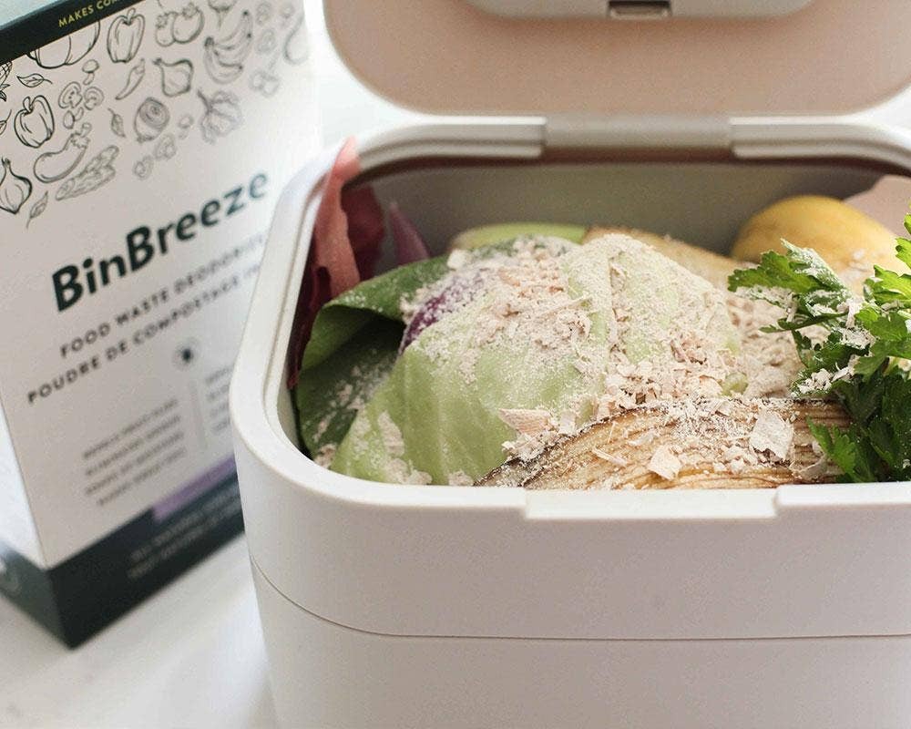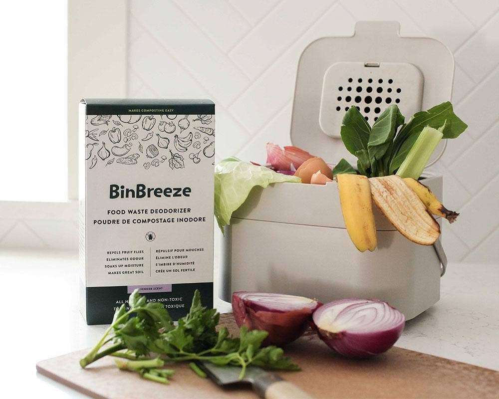 Poudre de compost BinBreeze parfumée à la lavande ! Dévirez-vous vos déchets alimentaires de la décharge ? Arrêtez de partager votre cuisine avec un essaim de mouches des fruits et la puanteur des restes alimentaires pourris : votre maison mérite mieux ! C'est là que BinBreeze intervient. Il suffit de saupoudrer notre poudre de compostage intérieur sur tous les déchets alimentaires frais de votre bac à compost, et votre cuisine est à nouveau à vous.